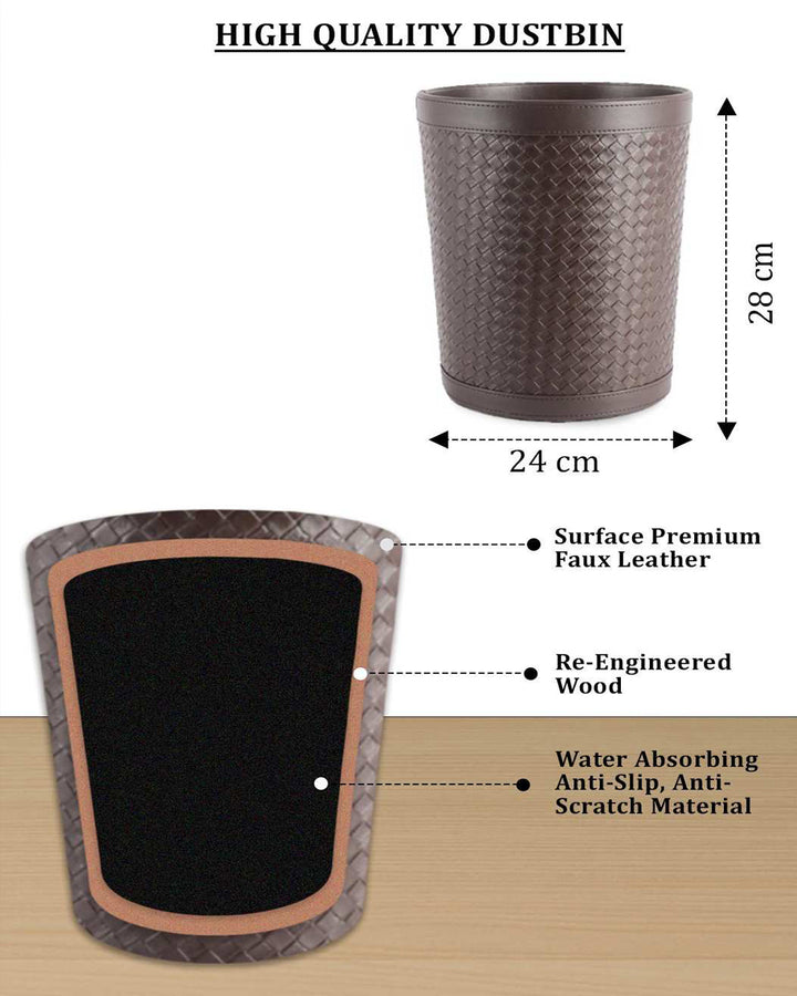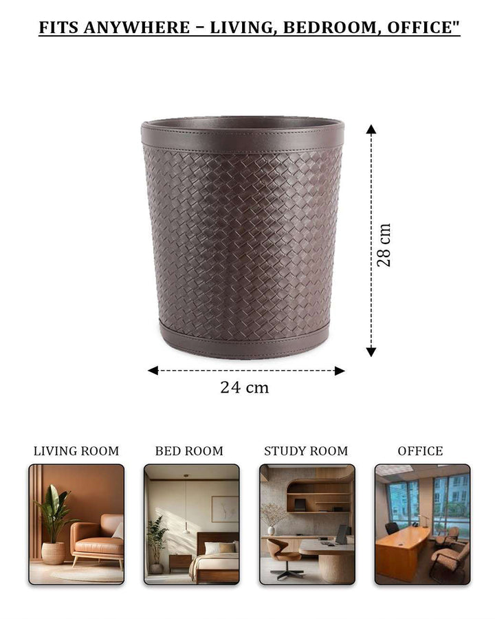 The Dustbin adds a touch of elegance and sophistication to any space. Crafted with a high-quality faux leather Interior and exterior, it features a smooth, durable surface that’s both stylish and easy to clean. Its sleek, minimalist design is perfect for offices, bedrooms, or living areas, seamlessly blending with modern and contemporary interiors. Lightweight yet sturdy, this dustbin combines practicality with refined aesthetics, making it a functional decor piece for your home or workspace.