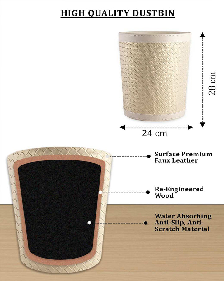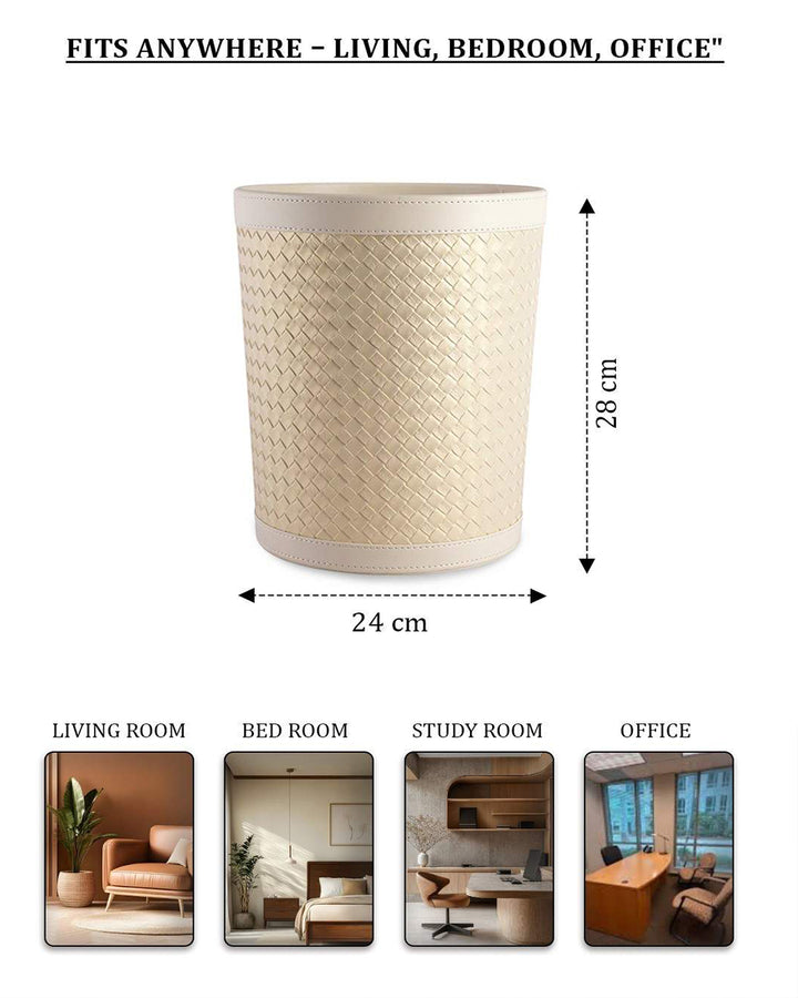 The Dustbin adds a touch of elegance and sophistication to any space. Crafted with a high-quality faux leather Interior and exterior, it features a smooth, durable surface that’s both stylish and easy to clean. Its sleek, minimalist design is perfect for offices, bedrooms, or living areas, seamlessly blending with modern and contemporary interiors. Lightweight yet sturdy, this dustbin combines practicality with refined aesthetics, making it a functional decor piece for your home or workspace.