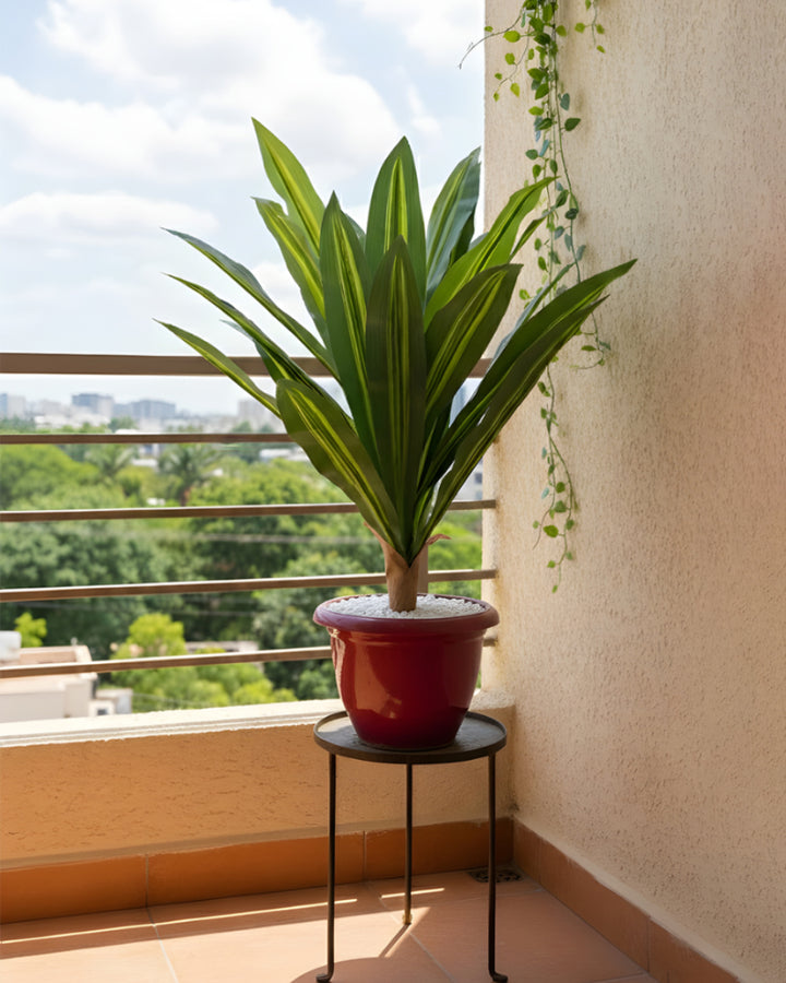 Vibrant artificial corn plant stem, featuring long green leaves with yellow stripes. Made from high-quality PVC and silk for a natural look—perfect for modern, maintenance-free decor.