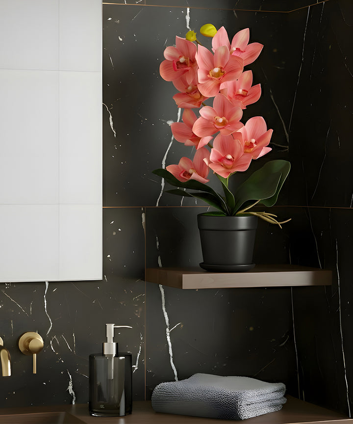 This faux plant showcases vibrant colour orchid blooms and broad lush leaves, elegantly arranged in a sleek matte-black pot for a chic, upscale decorative statement. Perfect for adding a touch of freshness and charm, these pots can be placed anywhere — in your living room, balcony, office desk, garden area, bathroom or entrance.