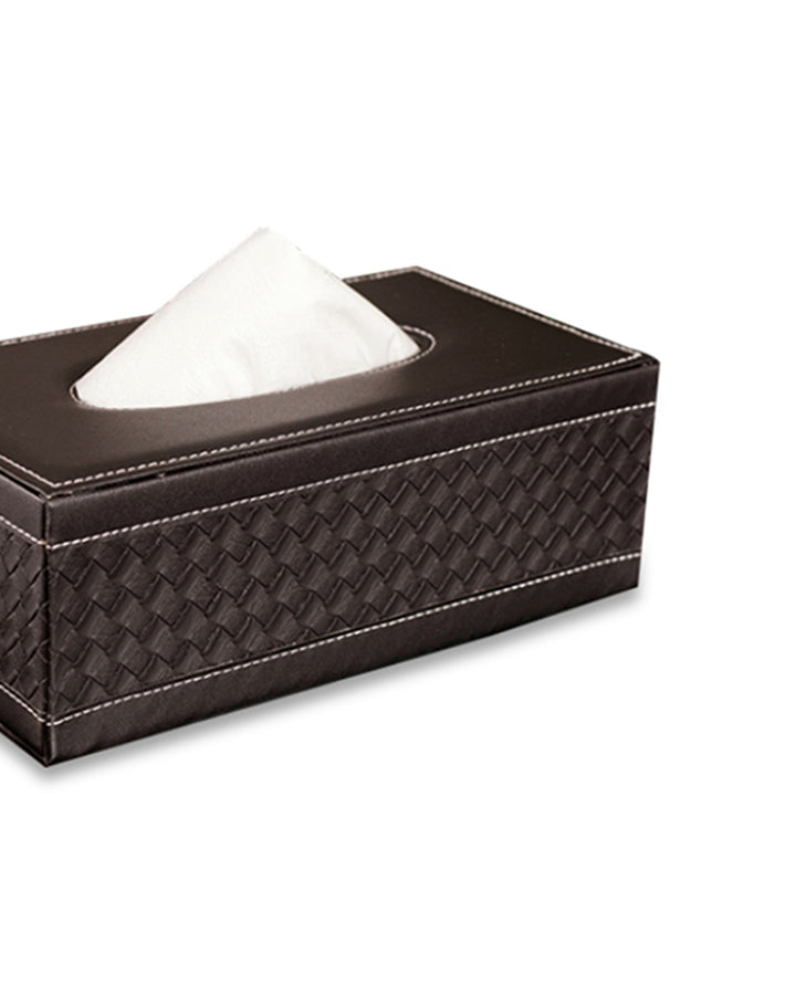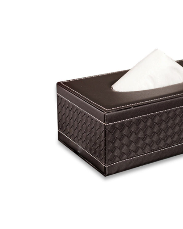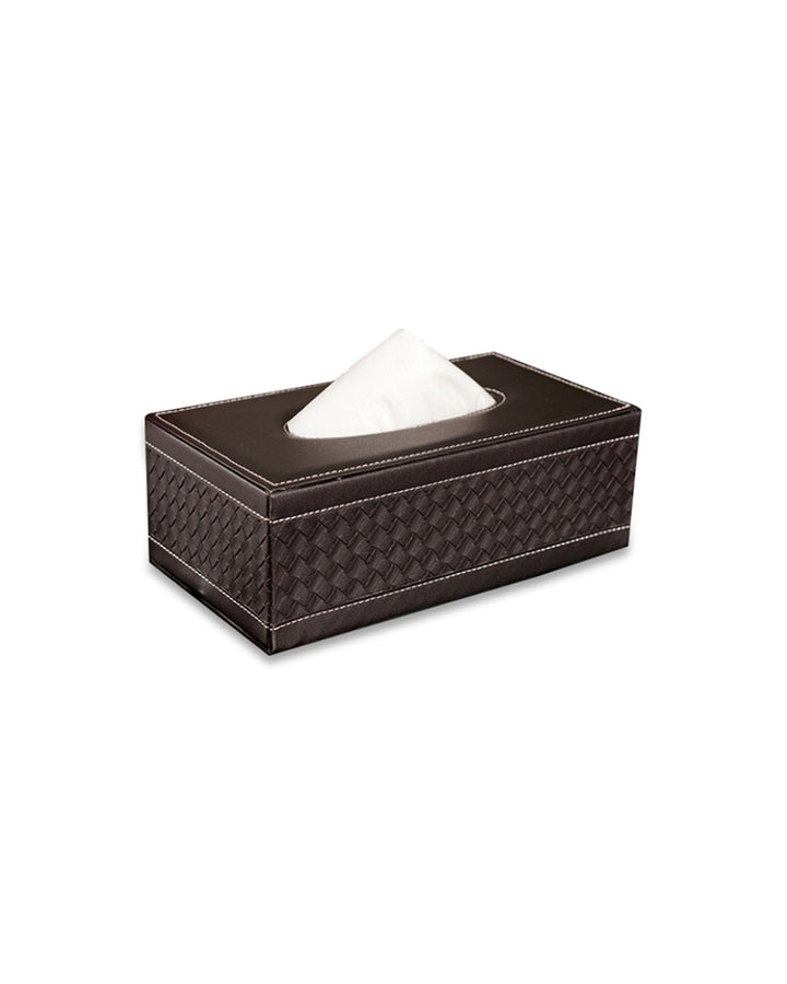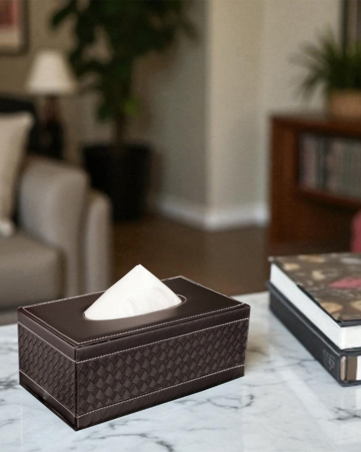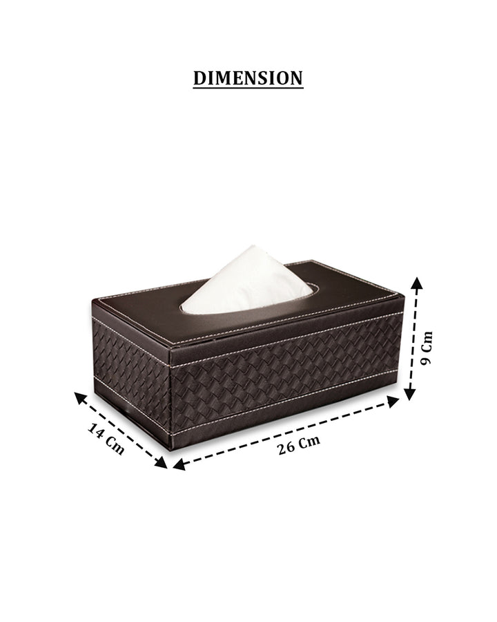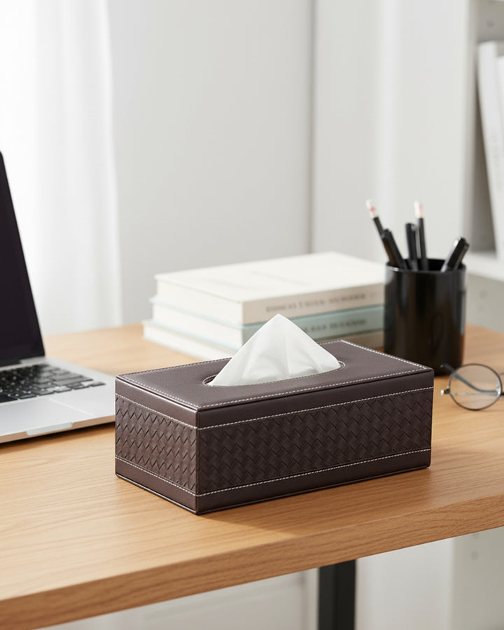 Add a touch of elegance to your home or office with this faux leather tissue box. Crafted with high-quality faux leather, it features a sleek and sophisticated design that seamlessly blends with any décor style, from modern to classic. The smooth finish and refined stitching give it a premium look, while the sturdy construction ensures durability. This tissue box is designed for convenience, with an easy-to-use lid or bottom panel for quick tissue refills. Its compact size fits perfectly on desks, countertops, coffee tables, or nightstands, keeping tissues within reach while elevating the aesthetics of your space.