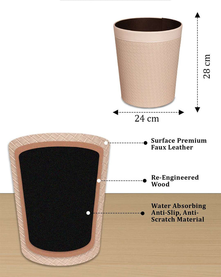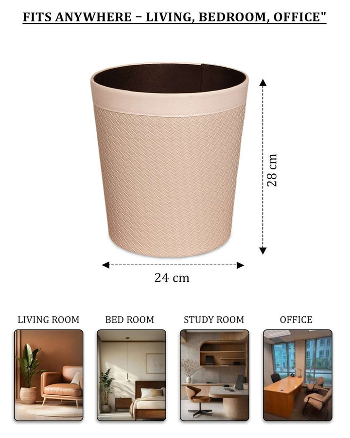 The Dustbin adds a touch of elegance and sophistication to any space. Crafted with a high-quality faux leather exterior, it features a smooth, durable surface that’s both stylish and easy to clean. Its sleek, minimalist design is perfect for offices, bedrooms, or living areas, seamlessly blending with modern and contemporary interiors. Lightweight yet sturdy, this dustbin combines practicality with refined aesthetics, making it a functional decor piece for your home or workspace.