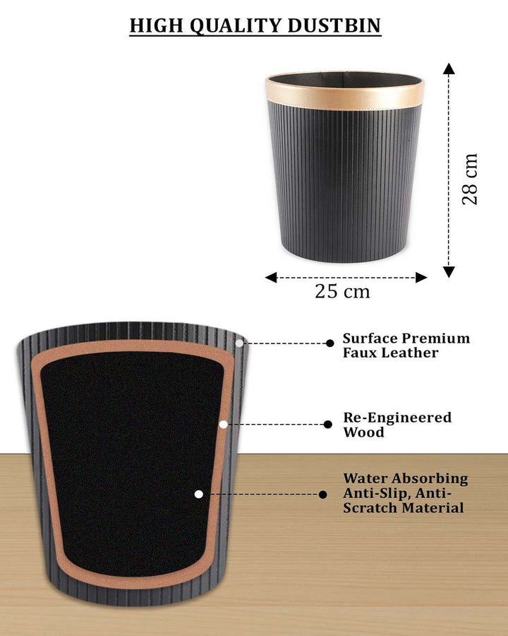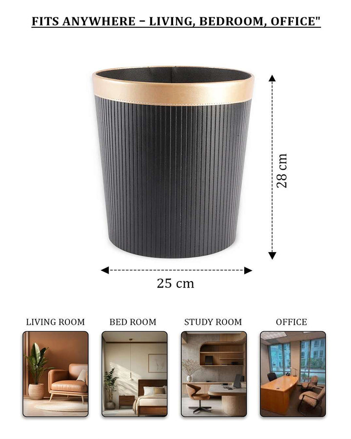 The Dustbin adds a touch of elegance and sophistication to any space. Crafted with a high-quality faux leather exterior, it features a smooth, durable surface that’s both stylish and easy to clean. Its sleek, minimalist design is perfect for offices, bedrooms, or living areas, seamlessly blending with modern and contemporary interiors. Lightweight yet sturdy, this dustbin combines practicality with refined aesthetics, making it a functional decor piece for your home or workspace.