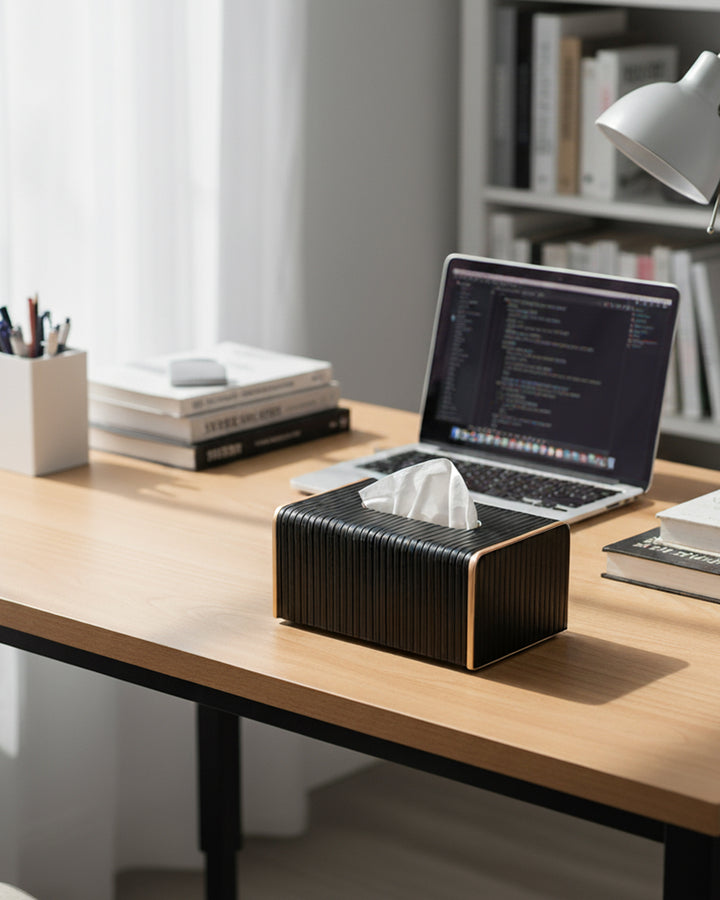 Add a touch of elegance to your home or office with this faux leather tissue box. Crafted with high-quality faux leather, it features a sleek and sophisticated design that seamlessly blends with any décor style, from modern to classic. The smooth finish and refined stitching give it a premium look, while the sturdy construction ensures durability. This tissue box is designed for convenience, with an easy-to-use lid or bottom panel for quick tissue refills. Its compact size fits perfectly on desks, countertops, coffee tables, or nightstands, keeping tissues within reach while elevating the aesthetics of your space. Ideal for use in living rooms, bedrooms, offices, or cars, this faux leather tissue box makes for a practical yet stylish addition to your everyday essentials.