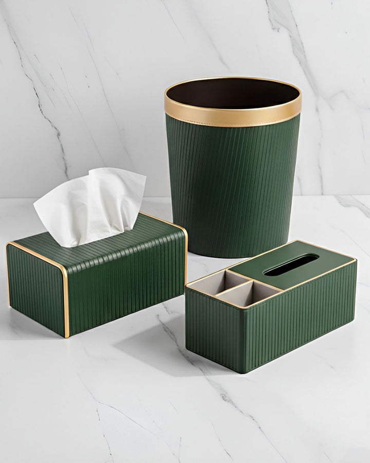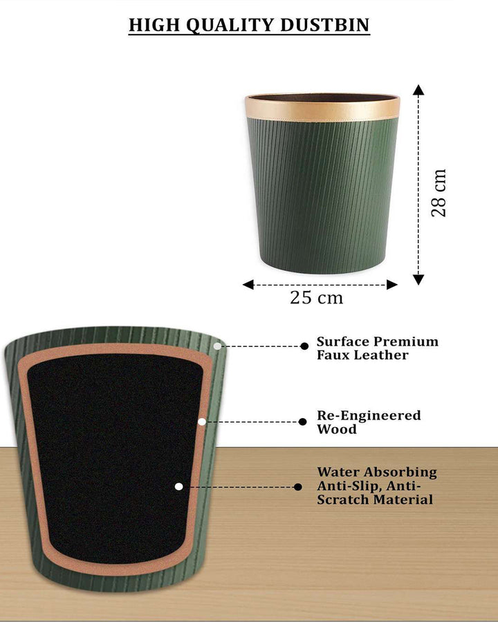 The Dustbin , Tissue Holders adds a touch of elegance and sophistication to any space. Crafted with a high-quality faux leather exterior, it features a smooth, durable surface that’s both stylish and easy to clean. Its sleek, minimalist design is perfect for offices, bedrooms, or living areas, seamlessly blending with modern and contemporary interiors. Lightweight yet sturdy, this dustbin combines practicality with refined aesthetics, making it a functional decor piece for your home or workspace.