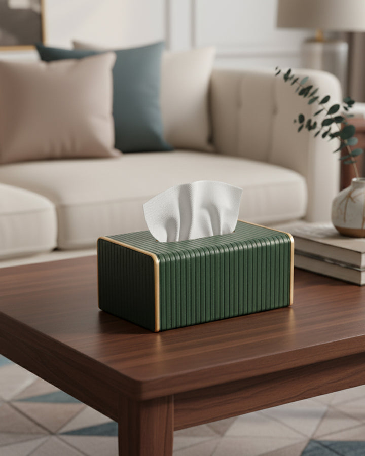 Add a touch of elegance to your home or office with this faux leather tissue box. Crafted with high-quality faux leather, it features a sleek and sophisticated design that seamlessly blends with any décor style, from modern to classic. The smooth finish and refined stitching give it a premium look, while the sturdy construction ensures durability. This tissue box is designed for convenience, with an easy-to-use lid or bottom panel for quick tissue refills. Its compact size fits perfectly on desks, countertops, coffee tables, or nightstands, keeping tissues within reach while elevating the aesthetics of your space. Ideal for use in living rooms, bedrooms, offices, or cars, this faux leather tissue box makes for a practical yet stylish addition to your everyday essentials.