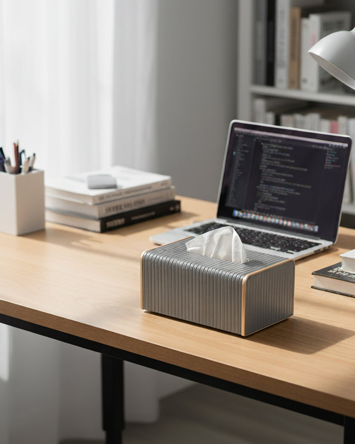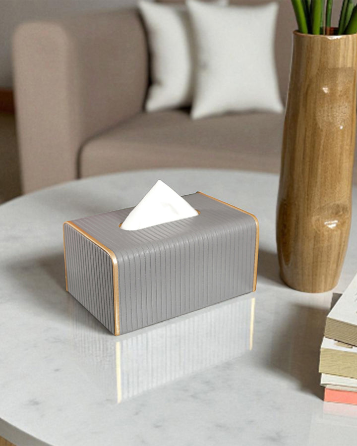 Add a touch of elegance to your home or office with this faux leather tissue box. Crafted with high-quality faux leather, it features a sleek and sophisticated design that seamlessly blends with any décor style, from modern to classic. The smooth finish and refined stitching give it a premium look, while the sturdy construction ensures durability. This tissue box is designed for convenience, with an easy-to-use lid or bottom panel for quick tissue refills. Its compact size fits perfectly on desks, countertops, coffee tables, or nightstands, keeping tissues within reach while elevating the aesthetics of your space.