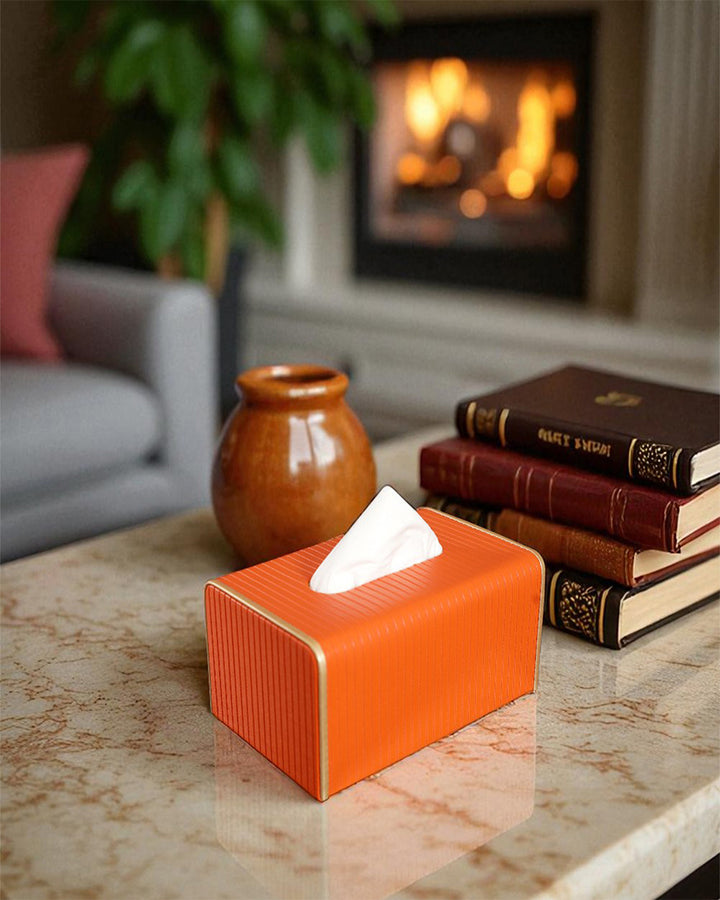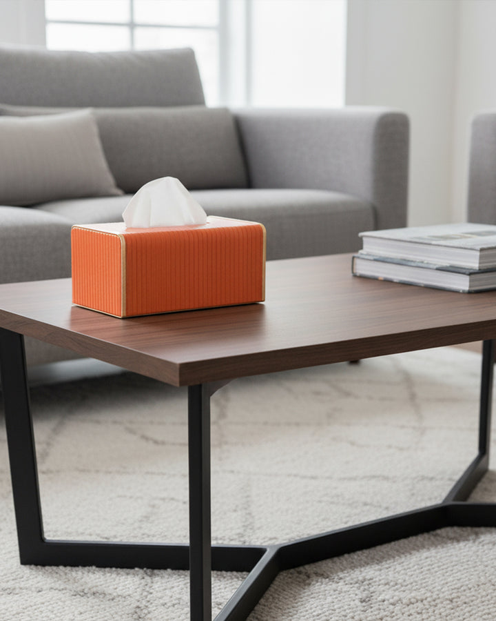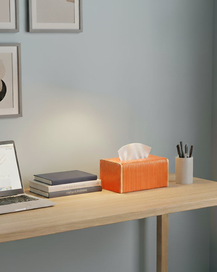 Add a touch of elegance to your home or office with this faux leather tissue box. Crafted with high-quality faux leather, it features a sleek and sophisticated design that seamlessly blends with any décor style, from modern to classic. The smooth finish and refined stitching give it a premium look, while the sturdy construction ensures durability. This tissue box is designed for convenience, with an easy-to-use lid or bottom panel for quick tissue refills. Its compact size fits perfectly on desks, countertops, coffee tables, or nightstands, keeping tissues within reach while elevating the aesthetics of your space. Ideal for use in living rooms, bedrooms, offices, or cars, this faux leather tissue box makes for a practical yet stylish addition to your everyday essentials.
