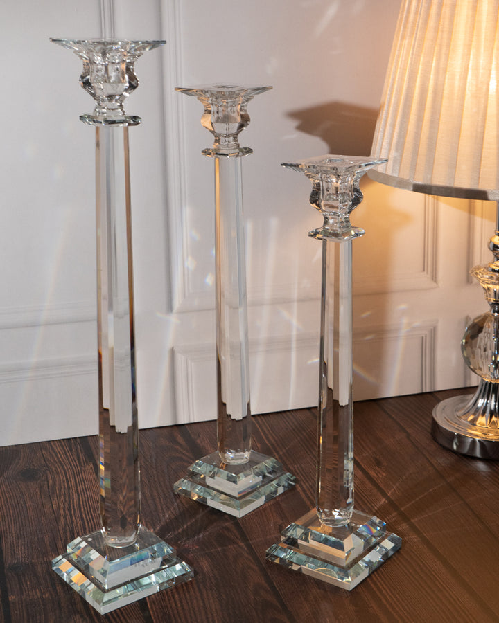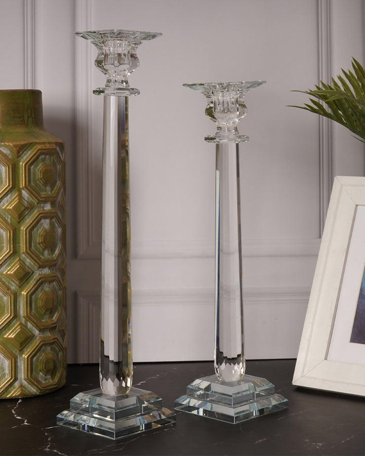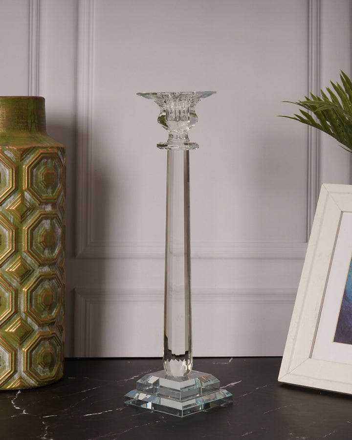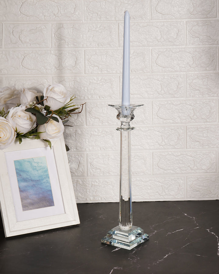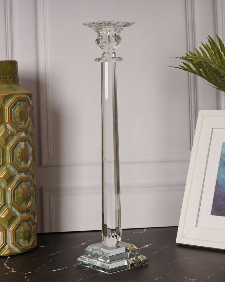 This crystal candle stand is an elegant and sophisticated décor piece, perfect for upscale interiors or formal settings . This Clear crystal candle stand is with high transparency and reflective quality.