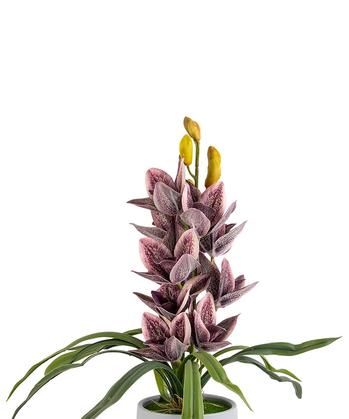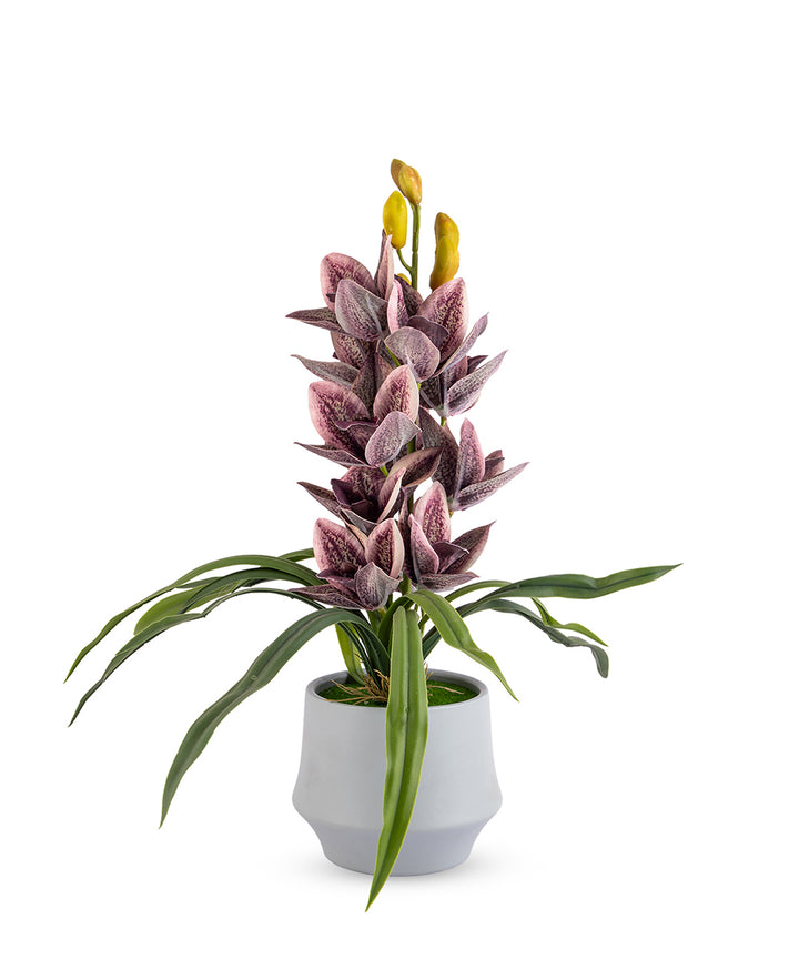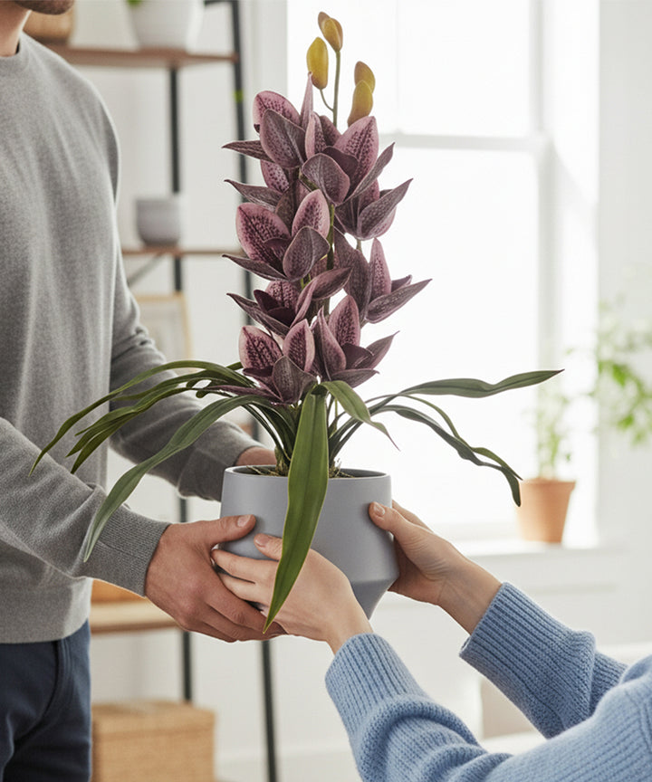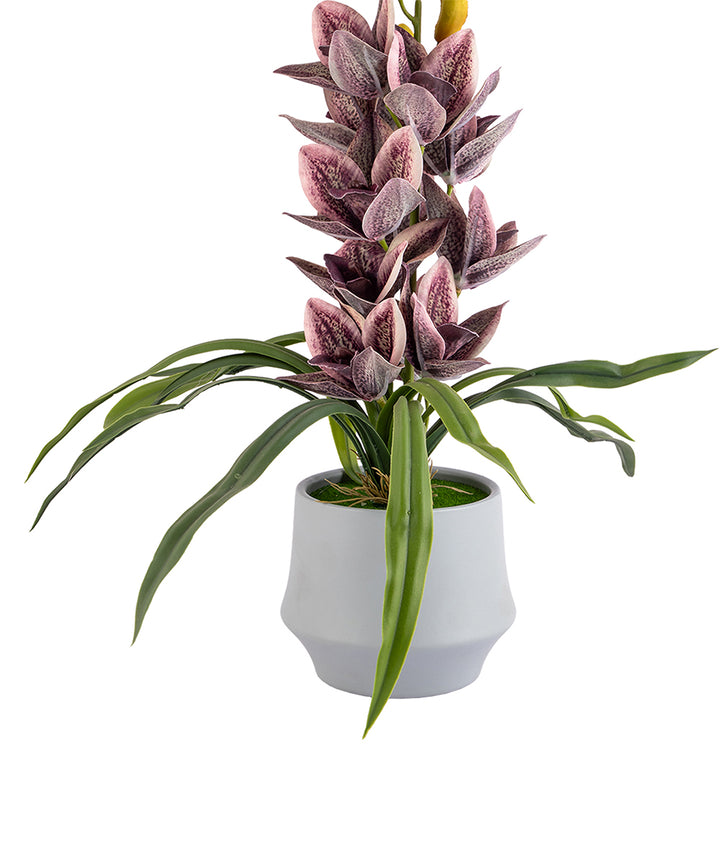 This unique arrangement of vertical lush faux jewel orchids with cascading leaves and a modern ceramic gray is perfect for adding a touch of colour in your decor. These pots can be placed anywhere — in your living room, balcony, office desk, garden area, bathroom or entrance.