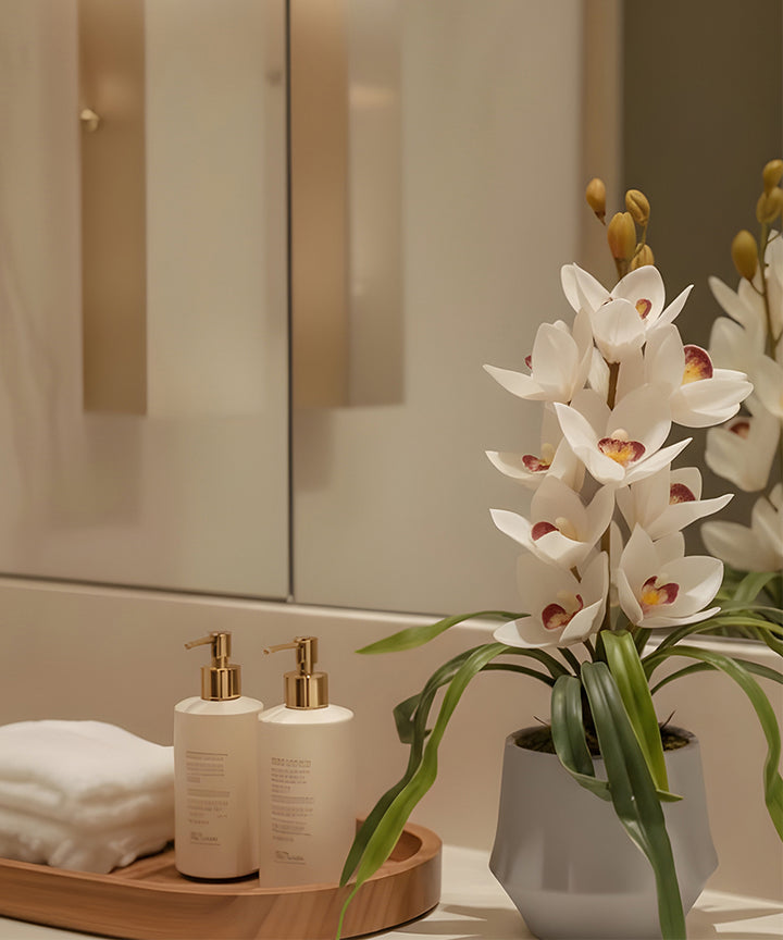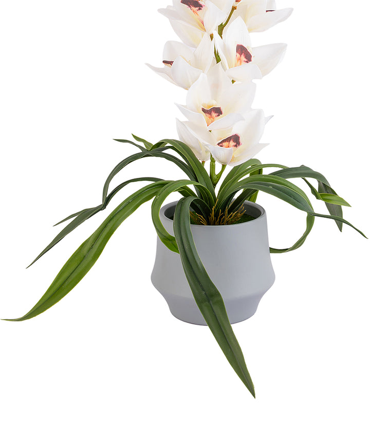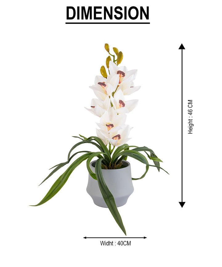 This unique arrangement of vertical lush faux jewel orchids with cascading leaves and a modern ceramic gray is perfect for adding a touch of colour in your decor. These pots can be placed anywhere — in your living room, balcony, office desk, garden area, bathroom or entrance.