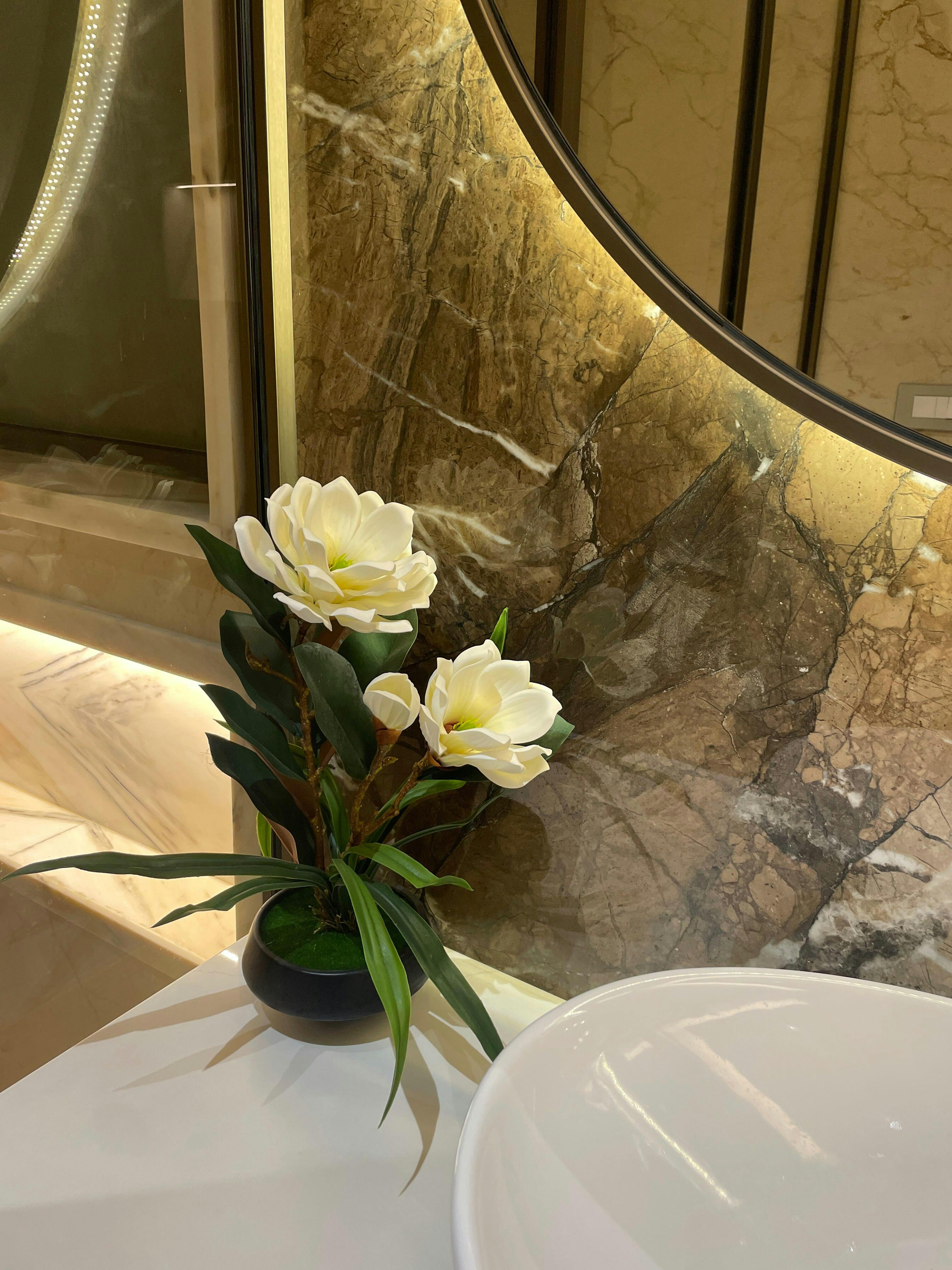 Elevate interiors with the lush faux Magnolia clusters with cascading leaves and buds, and a modern ceramic base for a striking touch of refined luxury decor. Perfect for adding a touch of freshness and charm, these pots can be placed anywhere — in your living room, balcony, office desk, garden area, bathroom or entrance.