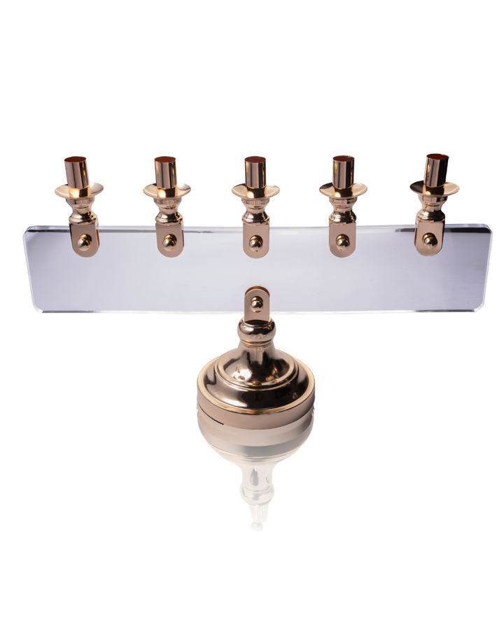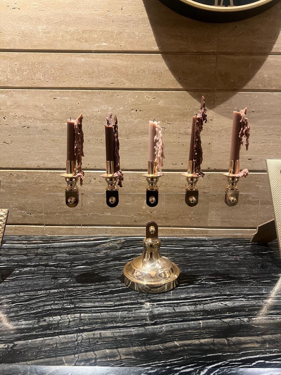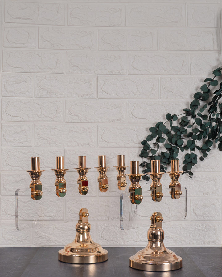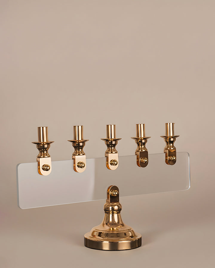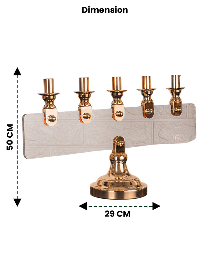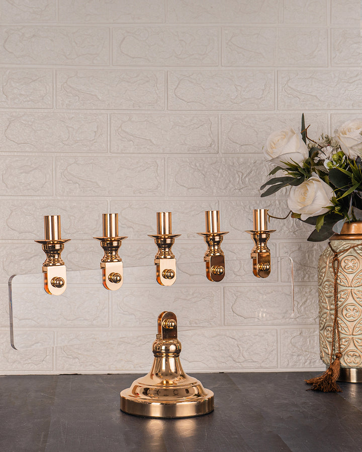 This freestanding 5-arm candle holder exudes regal charm with its classic pillar base and symmetrical arm extensions, each perfectly poised to hold a taper candle. Whether placed on a console, mantle, or dining table, it brings a sense of opulence and sophistication.