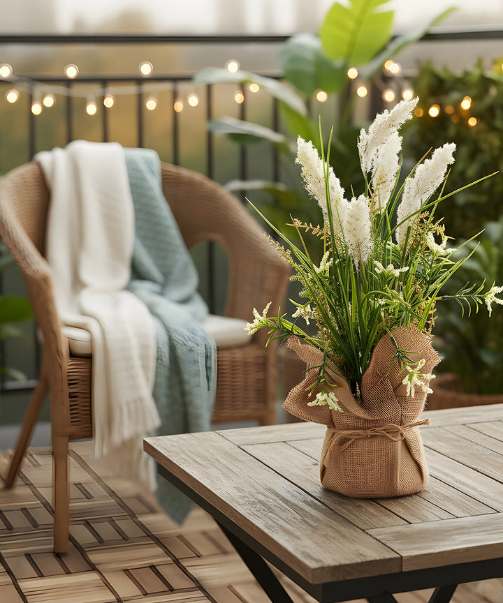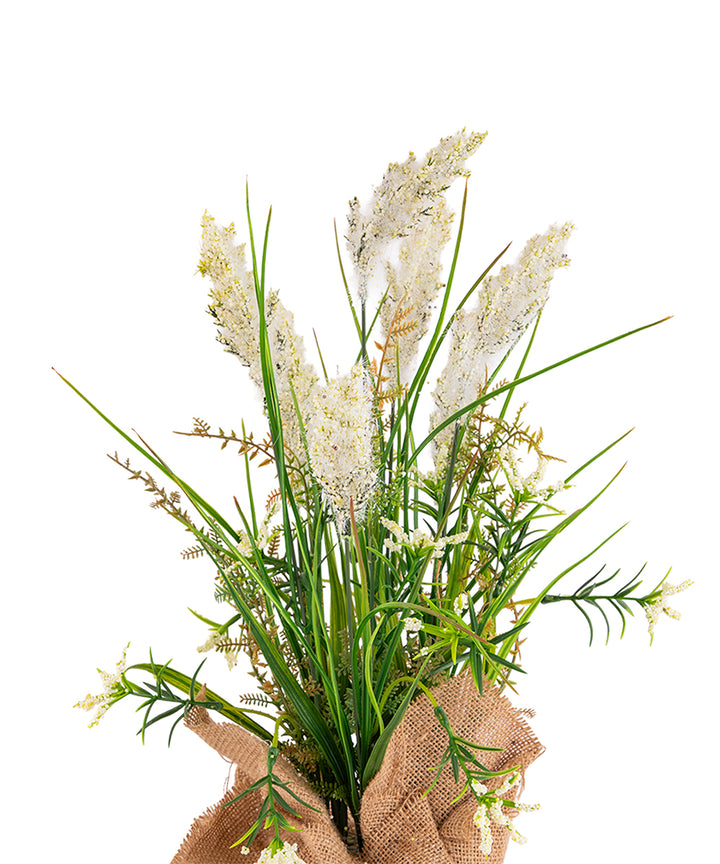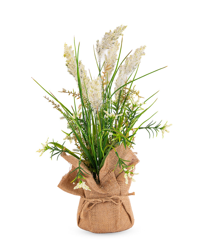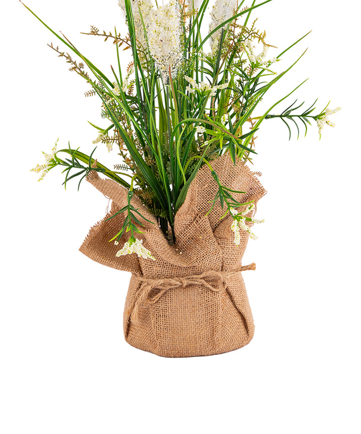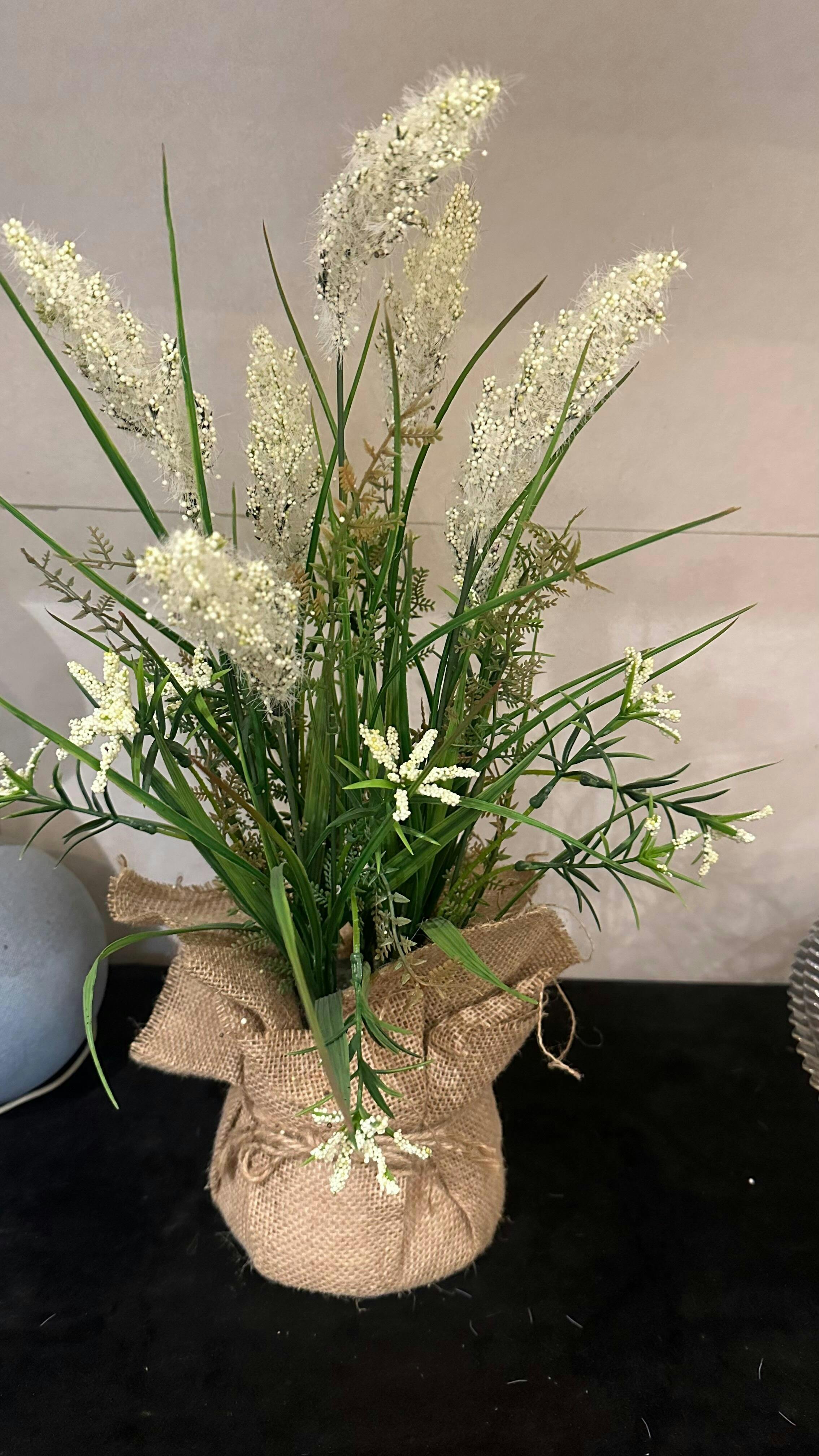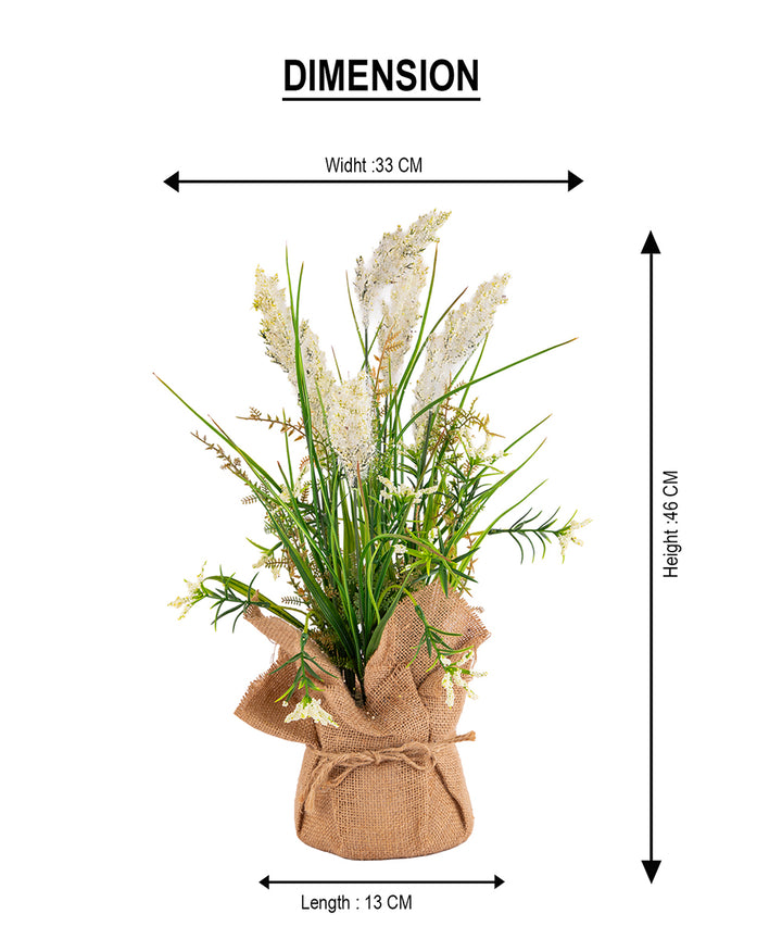 Graceful faux Pampas Grass bouquet in a charming jute-wrapped pot. Crafted from high-quality silk, durable plastic, and natural jute for timeless elegance in luxury interiors. Perfect for adding a touch of freshness and charm, these pots can be placed anywhere — in your living room, balcony, office desk, garden area, bathroom or entrance.