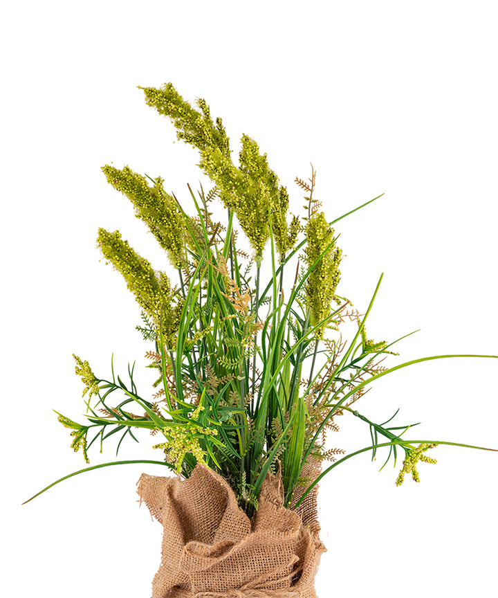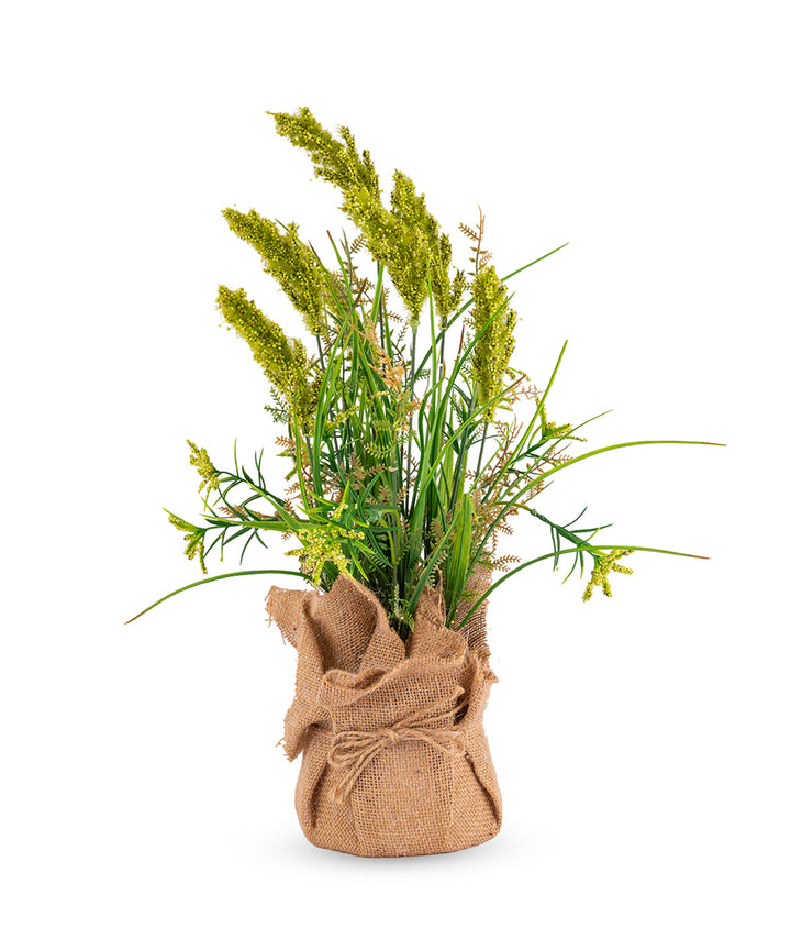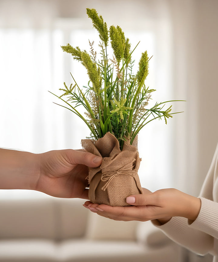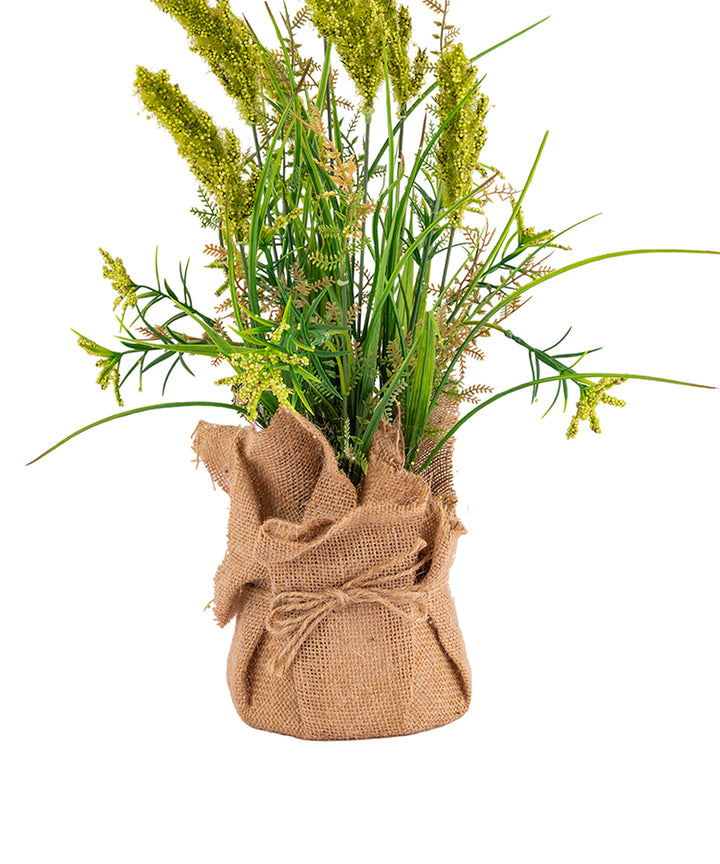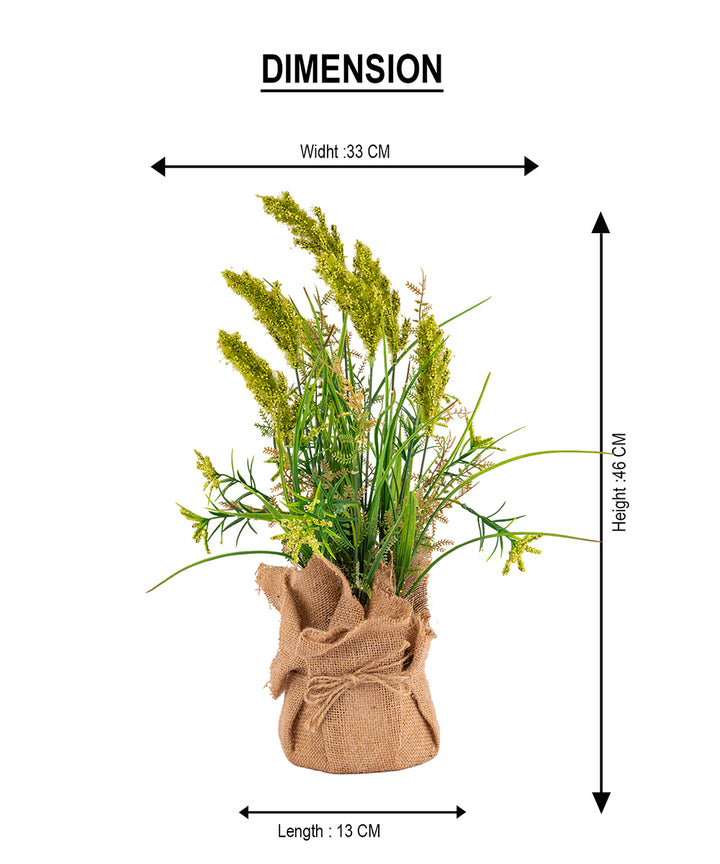 Graceful faux Pampas Grass bouquet in a charming jute-wrapped pot. Crafted from high-quality silk, durable plastic, and natural jute for timeless elegance in luxury interiors. Perfect for adding a touch of freshness and charm, these pots can be placed anywhere — in your living room, balcony, office desk, garden area, bathroom or entrance.
