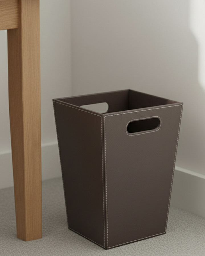 The Dustbin adds a touch of elegance and sophistication to any space. Crafted with a high-quality faux leather exterior, it features a smooth, durable surface that’s both stylish and easy to clean. Its sleek, minimalist design is perfect for offices, bedrooms, or living areas, seamlessly blending with modern and contemporary interiors. Lightweight yet sturdy, this dustbin combines practicality with refined aesthetics, making it a functional decor piece for your home or workspace.