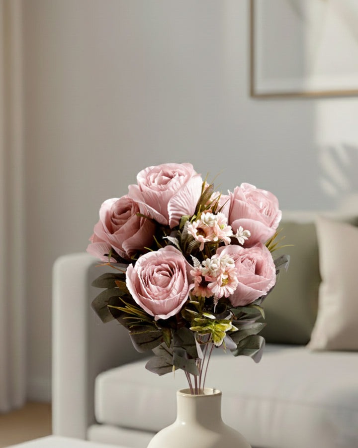 The Timeless Rose Faux Flower Bunch showcases 7 beautifully crafted roses with realistic petals and lifelike foliage. Each bloom exudes elegance, featuring intricate detailing and vibrant hues that capture the charm of real roses. Perfect for vases, centerpieces, or decorative arrangements, this faux bouquet adds a romantic and sophisticated touch to any space. Durable and maintenance-free, it’s an everlasting way to bring the beauty of roses into your home, office, or special event decor.