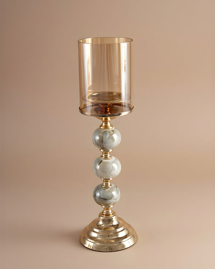 • Center Column: Composed of stacked spherical elements in a marble-effect finish, adding texture and elegance.