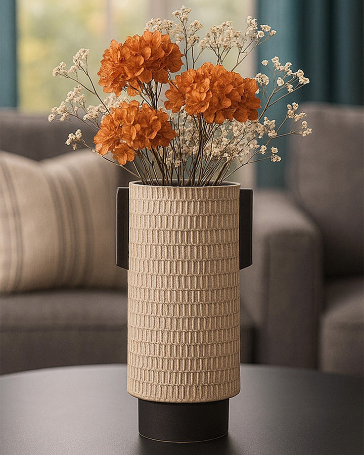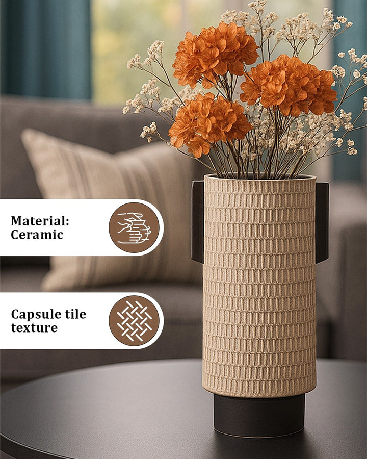 This beige ceramic vase offers a minimalist yet elegant look that complements any decor style. Its soft, neutral tone makes it versatile for various settings, from modern to classic interiors.